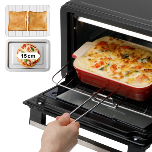 1) Upper & Lower Heaters 2) 70–230°C Wide Temperature Control 3) Timer: 15 minutes 4) Wattage: 1000W